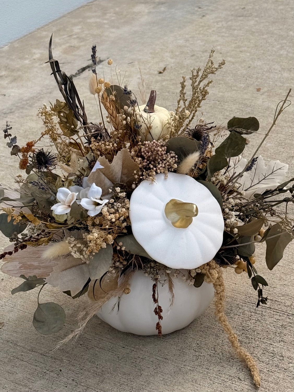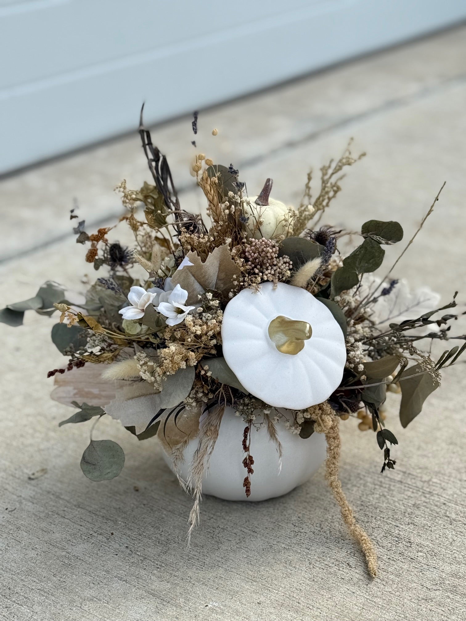 Forever Bloom – Ceramic Pumpkin with Dried Florals