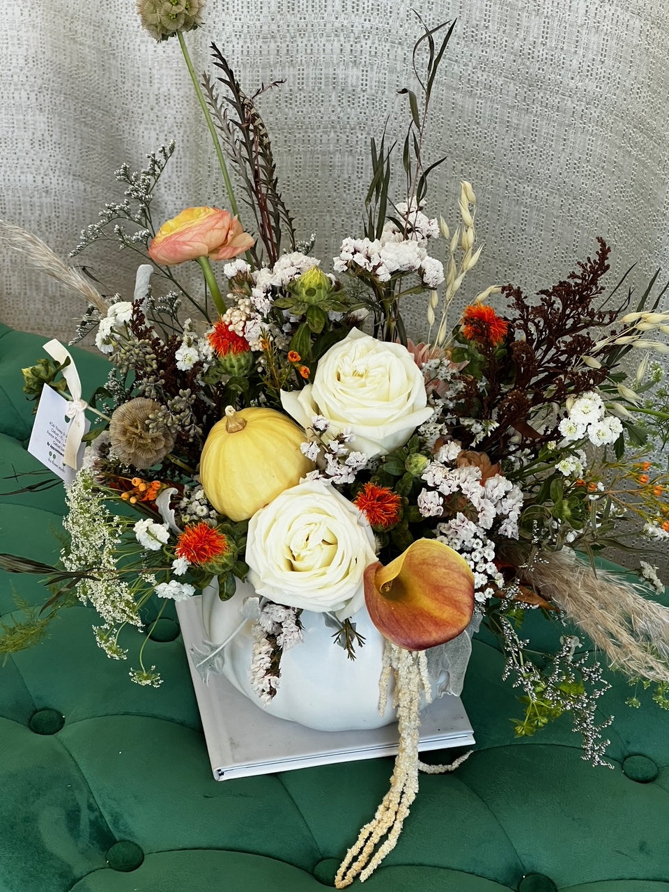 After the flowers have faded, the ceramic pumpkin container lives on. Use it as a chic planter for succulents, a candy dish for the holidays, or fill it with pebbles and décor accents. It’s the perfect keepsake that brings beauty into your home season after season.